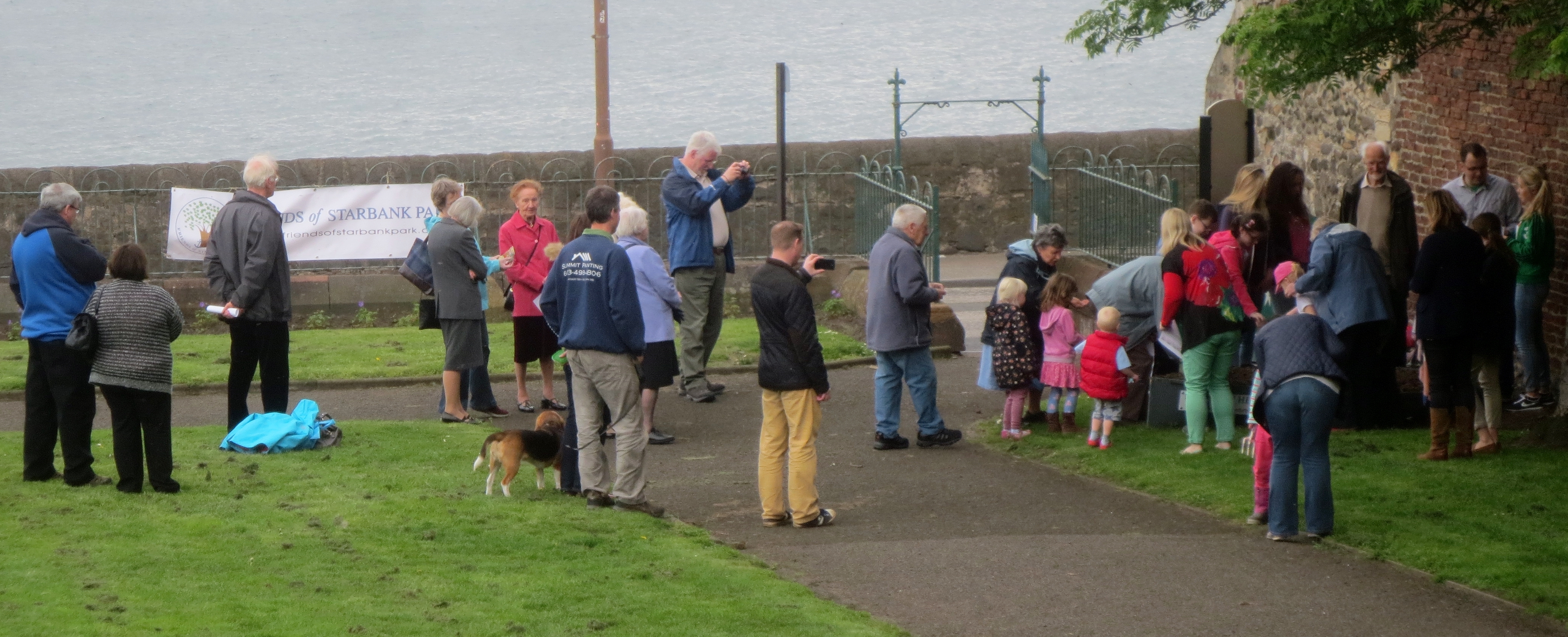 About 30 local people turned out on Saturday afternoon for our poppy planting ceremony with Wardie and Newhaven Churches. Justin Taylor, the Wardie Church youth leader spoke for a few minutes on the Great War and its impact on people and communities. The poppy seeds were planted by the children and Alister Greig, from Newhaven Church, closed with a few words, and an advert for the Friends of Starbank Park! And all was with a backdrop of a yacht race, so close that we could hear the wind rattling the sales!