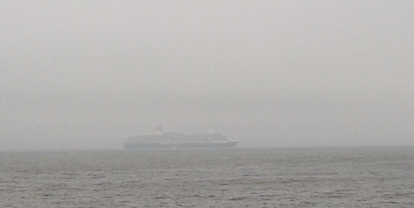 Cunard’s Queen Victoria off Newhaven Leave a reply The Queen Victoria had a damp, misty, windy and grey Edinburgh greeting this morning, and it looked a bit bumpy on the launch running from the ship to Newhaven Harbour. The view from Starbank Park: the Queen Victoria looming through the mist Share this: Share on Facebook (Opens in new window) Facebook Like Loading... Related