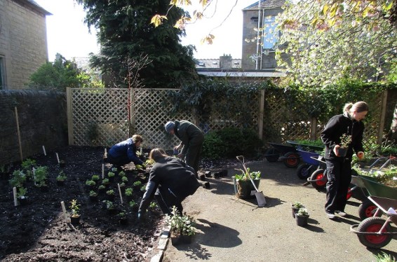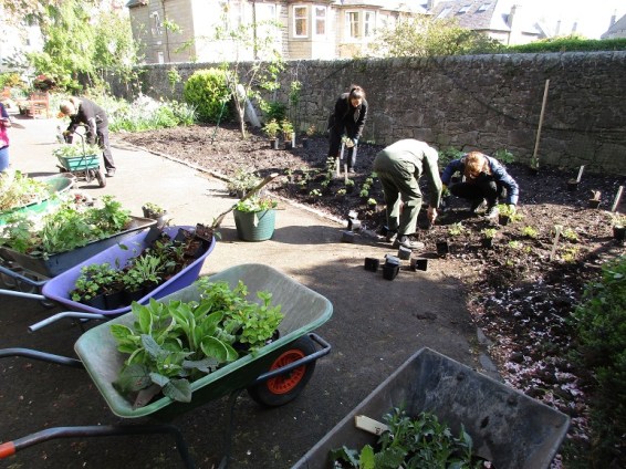 Wall to wall sunshine at the park this morning. The main herbaceous border is being completely replanted and we got properly started today! Special thanks to Jen and Fiona of the Council for organising the plants and the planting and for all their help today. And yes, the last photo really is one of the sky over Trinity at 10.00 this morning. Even the East wind wasn’t too bad today!
