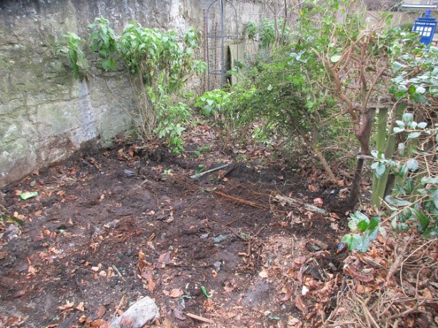 Cleaning out some of George and Margaret’s garden in the park today. Hard work but lots done. And the sleet didn’t come on until coffee time. This is what we moved and where it had been.
