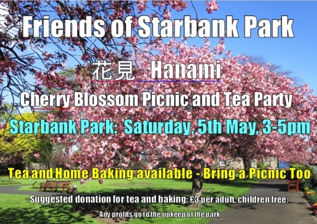 TODAY! Cherry Blossom Tea Party and Picnic @StarbankPark, 3-5, with Live Music, Cakes and Refreshments, Seed planting, Face Painting, Cherry Blossom Card Making.