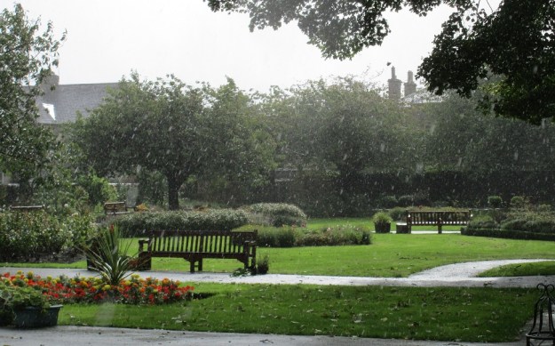 Pretty miserable weather in the park this morning, with a gale spoiling things even when it was sunny. We did a little weeding and planting, but it was better being in the bothy drinking coffee!