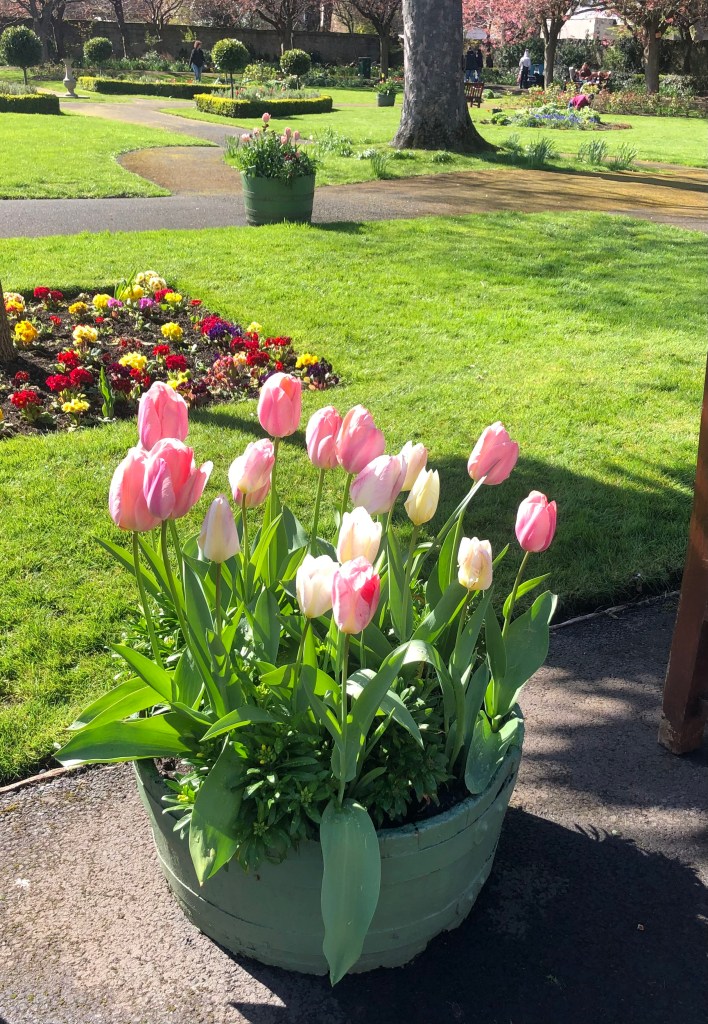 If you like your tulips and haven’t had the chance to visit the garden lately, here are some photos of the flowers putting on a wonderful Spring display: