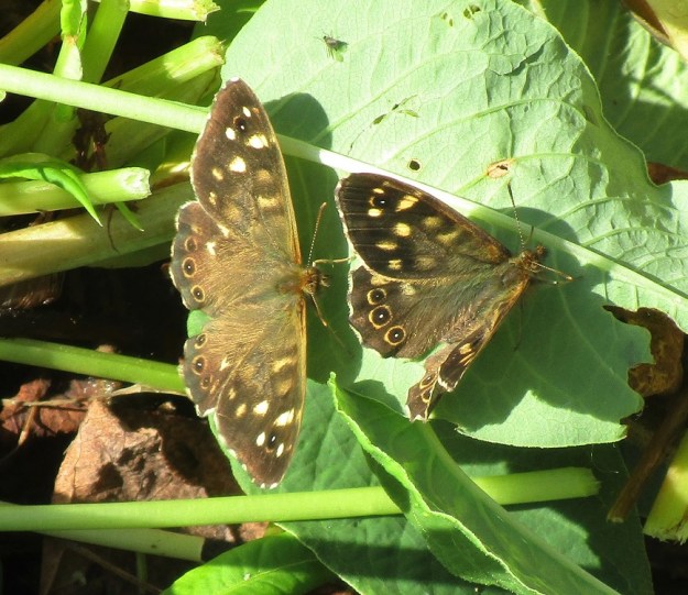 A busy morning at the park which is looking wonderful just now. And we had unusual visitors – speckled wood butterflies!