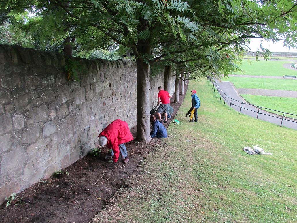 Super day at the park. TCV came again to Starbank today. They dug over empty bedding borders, spread compost, weeded and did a marvellous job again! Many thanks to Tim and all his team for their help. They have made a big difference.